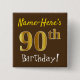 Brown, Faux Gold 90th Birthday, With Custom Name 15 Cm Square Badge