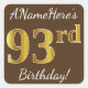 Brown, Faux Gold 93rd Birthday + Custom Name Square Sticker