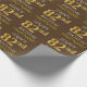 This wrapping paper design features a message like "HAPPY 82nd BIRTHDAY", with the "82nd" having a faux/imitation gold appearance. It also features a customisable name, and a brown coloured background. It could perhaps be used when wrapping gifts being given for somebody’s eighty second birthday. [~Z0000133]