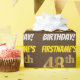 This wrapping paper design features a message like "FIRSTNAME’S 48th BIRTHDAY!", with the "48th" having a faux/imitation gold-like colour appearance, and with the name and "BIRTHDAY" in a fun, bold font. The name can be personalised, and the background is coloured brown. Wrapping paper like this could perhaps be used when wrapping birthday gifts being given to somebody in celebration of their forty eighth birthday. [~Z0000211]