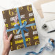 This wrapping paper design features a message like "SAMANTHA’S 63rd BIRTHDAY!", with the "63rd" having a faux/imitation gold-like colour appearance, and with the name and "BIRTHDAY" in a fun, bold font. The name can be personalised, and the background is coloured brown. Wrapping paper like this could perhaps be used when wrapping birthday gifts being given to somebody in celebration of their sixty third birthday. [~Z0000211]