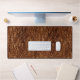 Brown Faux Leather Floral Leaf Pattern Desk Mat