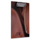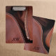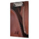 This unique clipboard design, inspired by rich brown leather and an unzipped brass zipper, has the look of fine leather with piping and stitching. It's sophisticated while being a fun twist on faux leather. Personalise with a Name or Initials for a stylish and distinctive gift.