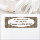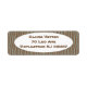 These return address labels have a geometric design of sort of flat-ended ovals repeating across the design in pale blue on a field of brown.