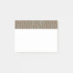 This Post-It notepad has a geometric design of sort of flat-ended ovals repeating across the design in pale blue on a field of brown.