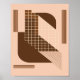 This abstract geometric design features a balanced interplay of light brown and dark brown shapes arranged over a soft beige background. A structured grid pattern in white overlays the composition, creating a sense of depth and architectural order. Diagonal lines, curved edges, and layered blocks add movement and visual contrast, while the clean white lines enhance clarity and structure. The overall aesthetic feels warm, modern, and harmoniously organized.