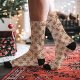 Celebrate the festive season with these brown gingerbread man polka dot Christmas socks. Featuring adorable gingerbread men and subtle polka dots on a cheerful brown background, these socks are perfect for adding a touch of whimsy to your holiday wardrobe. Ideal for cosying up by the fire or as a fun Christmas gift.