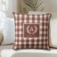 Elegant & Rustic Brown Gingham Monogram Crest Throw Pillow.