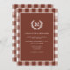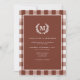 Brown Gingham Monogram Crest QR Code Invitation for Details and RSVP. Bring vibrant charm to your big day with this classic gingham wedding invitation, part of the Elegant Rustic Gingham Collection. Featuring a bold gingham pattern background in your choice of six cheerful colours, a monogram crest, and elegant serif typography, this design blends rustic charm with timeless style. Perfect for country, barn, or garden weddings, this invitation sets the tone for a joyful and relaxed celebration. Pair it with our matching gingham plates, napkins, tags, welcome signs, and more for a cohesive and colourful wedding suite.