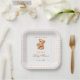 Brown Gingham Teddy Bear Neutral Baby Shower Paper Plate