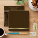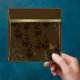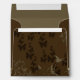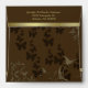 Elegant brown square invitation envelope, with gold tone bands, across the front bottom and the edge of the back flap and beautiful graphics of butterflies, on the back. The inside of the envelope is done in a solid light brown colour. Golden yellow return address, on the back flap, is ready to personalise for your event. Lovely finishing touch to brown and gold 50th wedding anniversary invitations, see link below.