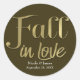 Brown & Gold Fall in Love Leaves Engagement Party Classic Round Sticker