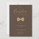 Brown & Fake Gold Chic Funny Bow Tie with Polka Dots Bachelor Luncheon Invitation with Envelope.