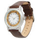 This great watch features a white clockface surrounded by an abstract design of golden brown steampunk circles with a distressed, textured, grunge feel. The design also brings to mind the patterns on a giraffe!