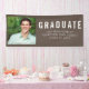 Brown photo banner for the graduation party. Personalised with a photo, the name of the student, their school, and graduating year. The brown background is customisable with Zazzle's design tool and can be changed to match your school colours or photo. Perfect for high school or college graduation parties. Contact me for assistance with your customisations or to request additional matching or coordinating Zazzle products for your party.