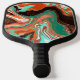 Modern pour painting marble effect brown green and black abstract art pickleball paddle.