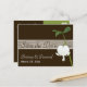 This simple modern brown, green, and ivory save the date post card has a PRINTED faux wood grain band across the top, along with a single white bleeding heart flower and stem with leaves on it that matches the wedding invitation shown below. It would be perfect for a casual or rustic spring, wummer, or fall wedding or anniversary. ****If you change fonts, or the size of the font, some of the design and/or text may get cut-off. Everything will print as you see it on your monitor. I will not see changes you make, and Zazzle will NOT correct anything (typos, mis-alignment etc.). The text is all customisable. If you need help with this product, please email me BEFORE you place your order. If you require any other matching items, please email your request to niteowlstudio@gmail.com.