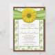 The text on this brown and green floral damask yellow gerbera daisy wedding invitation is fully customisable. To change it use the personalise option. For more extensive text changes, such as changes to the font, font colour, or text layout, use the customise option. Although this invitation is currently customised for a wedding, it could also be used for other special occasions such as a wedding anniversary, a birthday party invitation, or a bridal shower. Really it's up to you. All you need to do is change the text. NOTE: This invitation is a flat design without any 3D embellishments.