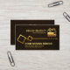 Overleaf, the same grunge theme is used with the logo at the top. This is followed by your prestigious name, contact details and a slogan caption to publicise your services. All lettering are in faux gold.