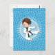 This design features a cute brown haired martial arts kid with black belt. On blue decorative background.