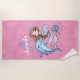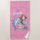 Brown Hair Mermaid Custom Name Girl Pink Beach Towel