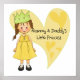 An adorable little princess with brown hair, a green tiara, and yellow dress with a muted heart background on Mummy and Daddy's Little Princess T-shirts, bodysuits, bags, cards, stickers, mousepads, keychains, wall clocks, pillows, and so much more for the little princess in your life!