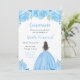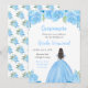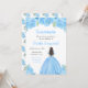 Brown Hair Princess Blue Floral Quinceanera Invitation