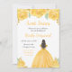 This sweet sixteen invitation features faux glitter gold floral flowers and a beautiful princess with brown hair and an elegant dress. This is perfect for a sweet sixteen birthday party.