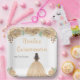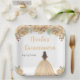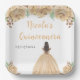 This Quinceanera plate features faux glitter champagne peach cream floral flowers and a beautiful princess with brown hair and an elegant dress. This is perfect for a Quinceanera birthday party.