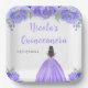 Brown Hair Princess Purple Floral Quinceanera Paper Plate