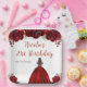 This birthday napkin features faux glitter red floral flowers and a beautiful princess with brown hair and an elegant dress. This is perfect for a birthday party.
