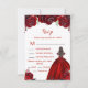 This sweet sixteen meal choice card features faux glitter red floral flowers and a beautiful princess with brown hair and an elegant dress. This is perfect for a sweet sixteen birthday party.