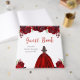 This sweet sixteen guest book features faux glitter red floral flowers and a beautiful princess with brown hair and an elegant dress. This is perfect for a sweet sixteen birthday party.
