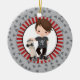 Brown Hair Skateboard Boy - Grey Red Ceramic Tree Decoration