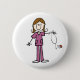Button with a brown haired female stick figure nurse with a stethoscope, great for RNs, LPNs, ER nurses, paediatrics nurses, OB nurses, and future nurses!