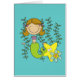 A brown haired smiling mermaid and yellow starfish swim among the seaweed, a design that's cute and colourful for girls who love the ocean and mermaids! Mermaid T-shirts, bodysuits, bibs, blankets, burp cloths, cards, stickers, bags, mugs, key chains, pillows, wall clocks, and lots of other mermaid gear!