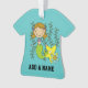 A brown haired smiling mermaid and yellow starfish swim among the seaweed, a design that's cute and colourful for girls who love the ocean and mermaids! Mermaid T-shirts, bodysuits, bibs, blankets, burp cloths, cards, stickers, bags, mugs, key chains, pillows, wall clocks, and lots of other mermaid gear!