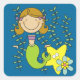 A brown haired smiling mermaid and yellow starfish swim among the seaweed, a design that's cute and colourful for girls who love the ocean and mermaids! Mermaid T-shirts, bodysuits, bibs, blankets, burp cloths, cards, stickers, bags, mugs, key chains, pillows, wall clocks, and lots of other mermaid gear!