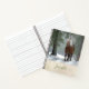 Spiral notebook with a photograph of a brown horse with a long white scruffy mane. Standing in a forest with snowflakes falling all around.