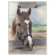 A chestnut brown horse with a white streak on its face is seen standing in the paddock. The image has a soft and dreamy quality to it. Customise by adding a caption, name, or monogram.