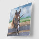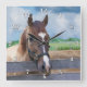 A chestnut brown horse with a white streak on its face is seen standing in the paddock. The image has a soft and dreamy quality to it. Customise by adding a caption, name, or monogram.