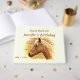 You can easily customise or remove the text on this wonderful birthday party guest book which features a beautiful gold and brown horse lit by the yellow sun.