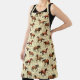 Brown horses gallop across this apron, with horseshoes scattered around them. Perfect for horse lovers.