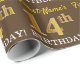 This wrapping paper design features a message like "First-Name’s 14th BIRTHDAY!", with the "14th" having a faux/imitation gold-like colour appearance. The name can be customised, and the background is coloured brown. It could perhaps be used when wrapping gifts being given for somebody’s fourteenth birthday. [~Z0000180]