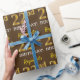 This wrapping paper design features a message like "Reginald’s 22nd BIRTHDAY!", with the "22nd" having a faux/imitation gold-like colour appearance. The name can be personalised, and the background is coloured brown. It could perhaps be used when wrapping gifts being given for somebody’s twenty second birthday. [~Z0000180]