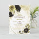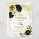 Beautiful brown ivory white and gold flowers with gold leaves on a gold geometric frame birthday party invitation.