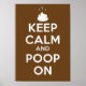A brown poster with the white text Keep calm and poop on. Above the text there is a white poop icon.