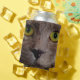 Pictured in a oil paint design is a brown kitten with big greenish eyes