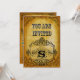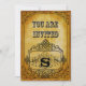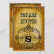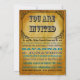 Monogram Elegant But Funky and Distressed Vintage Poster Style Aqua Blue, Mustard Yellow & Brown Kraft Paper Rustic look Wedding Invitation