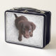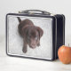 This is a standard metal lunchbox that appears to work just fine. We designed this box ourselves with an uploaded photo and custom text on the front and back. It looks absolutely beautiful except the front of the lunchbox is not centered like it shows in the photo. The print borders don't align with the inset flat part of the box where the preview photo online showed it perfectly centered in there. The back looks nice and centered though.